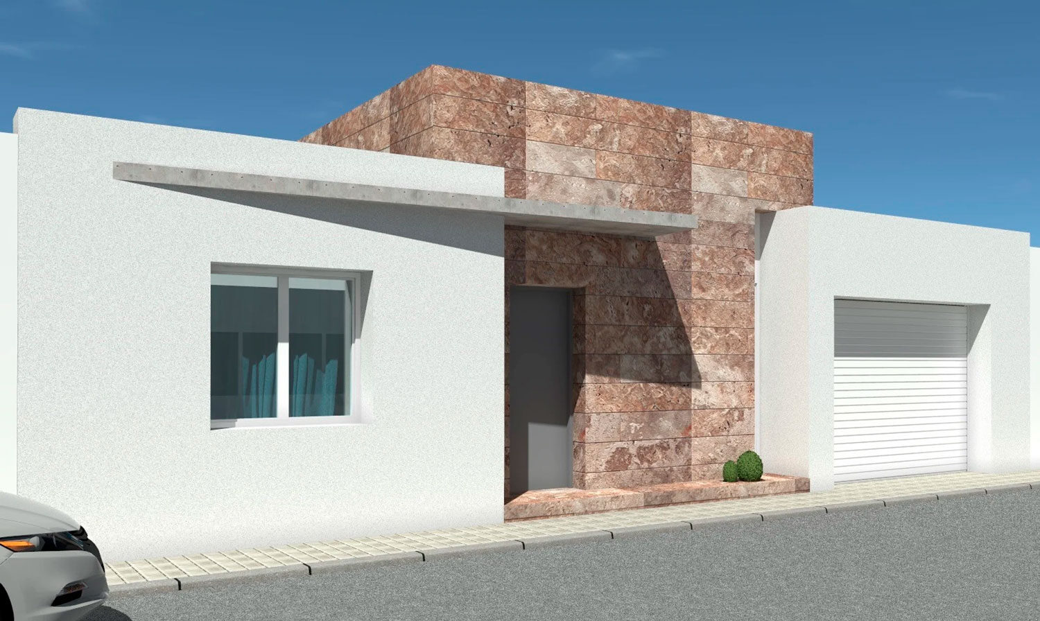 Los volúmenes cúbicos se modelan creando diferentes planos en fachada y aportando mayor calidez a la vivienda...